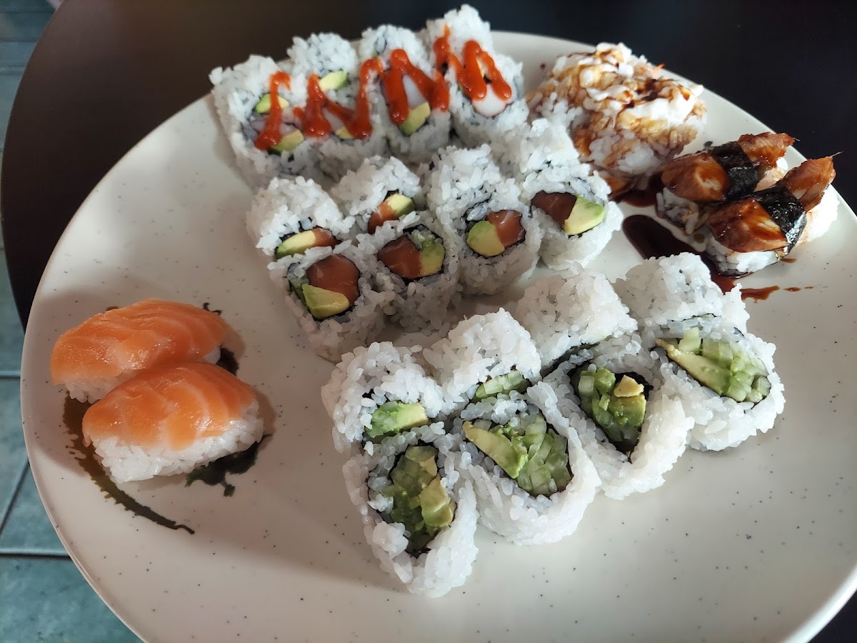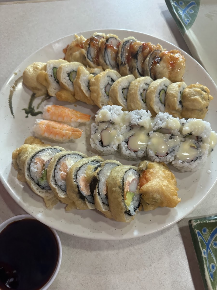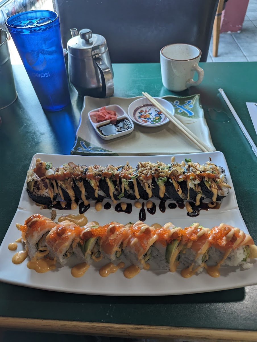 I’ve been eating here for the last 4 years and it’s my favorite sushi place. It’s always very clean and the workers are super friendly! I’m super obsessed with the “Idaho Roll” and it’s ALL I eat! I’m pregnant currently and really craving them so I have gotten them three times a week. It’s not super expensive. I order usually the Idaho Roll and the Spicy Crunch. The Idaho roll has- crab, Avacado, cream cheese and house sauce which to me taste like a thick version of a tangy lemon sauce. Then the spicy crunch has- tempura shrimp, crab, avacado, and cream cheese. It’s tempura dipped and has a tangy spicy sauce that actually isn’t hot at all. If we’re talking on a scale of 1-10 I’d give spice a 2. It’s such a small amount on top of the sushi it doesn’t make it hot. This sushi restaurants presentation even for dine-out is always beautiful! I’ll probably eat them forever! I’d highly recommend this place because they have over 80 rolls! And they have hot and cold rolls. Tempura rolls, all kinds! It’s definitely one of my favorite places in Idaho to eat! **Update- I’ve been coming here for 2 years now! Almost three. I order online and also in person. They have a wonderful roll called “Haze Special” which I’d HIGHLY recommend. Staff are always nice and say thank you on your way out! They’re quick and efficient when making the food and I never have to wait to long!